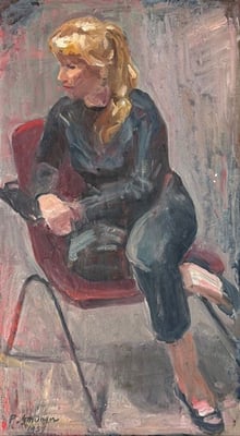 Modernes Mädchen, 1957, Öl auf LW, 77 x 44 cm, CHF 1'500.--