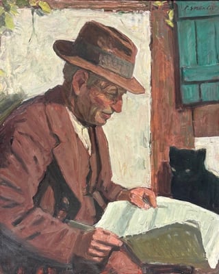 Zeitungsleser mit Katze, Öl auf LW, 80 x 63 cm, CHF 2'300.--