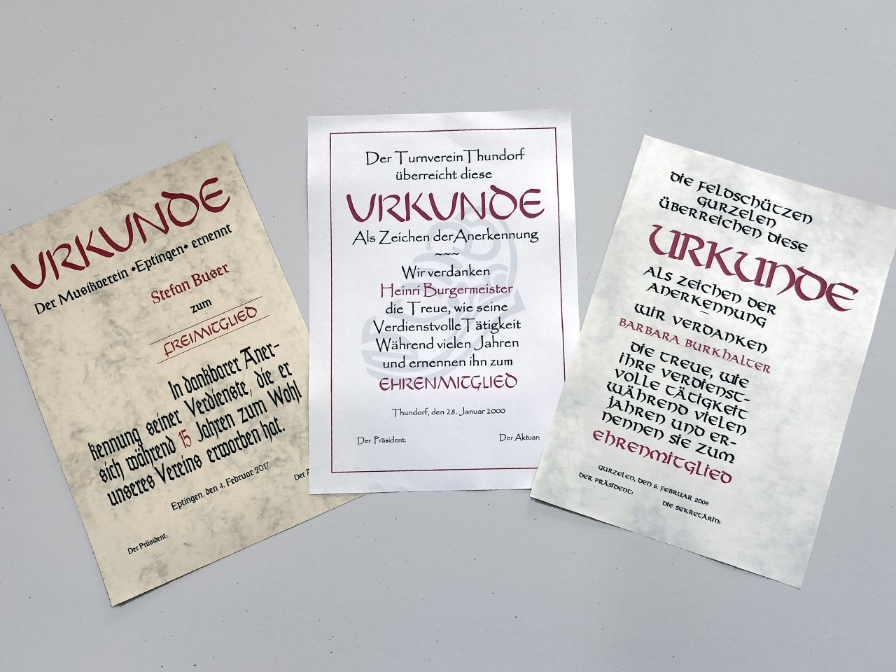 In dankbarer Anerkennung...Die Anfertigung von Urkunden für Vereine, Gesellschaften oder Privat-personen usw. ist seit Jahren eine Spezialität von uns.